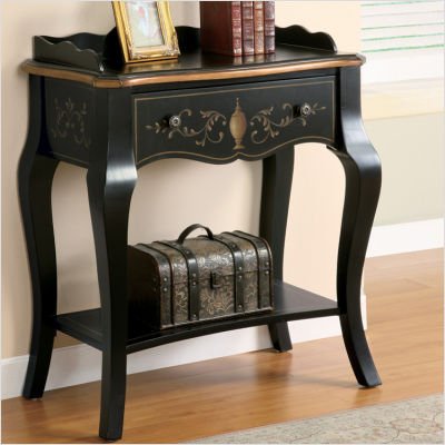 Accent tea table with shelf and drawer, finished in black and painted gold accents..../ Coaster Accent Tea Table / Entry Table