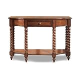 The Tuscany Console Table brings elegant style to your living space. It stands out with its versatility and dramatic detail. This sofa table features twisted rope legs, onion feet, a routed drawer front and planked decoration. Bringing a touch of the Italian countryside into your home, this table will be the ideal accent piece for a hallway, dining room or living room. Features: Shelf Drawer Finish: Brown Shape: Free form Table top material: Wood top Dimensions: 33"H 48"W 18"D.../ Cooper Classics Tuscany Console Table / Entry Table