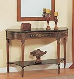Dimension: 48"W x 16"D x 32"HFinish: Light CherryMaterial: WoodEntry Way Console Table Light Cherry FinishItem features a storage drawer and a slightly narrower shelf for hold books, blankets or other miscellaneous items.Floral pattern on front and sides.Matching wall mirror is available separately.Assembly required..../ Entry Way Console Table Light Cherry Finish / Entry Table